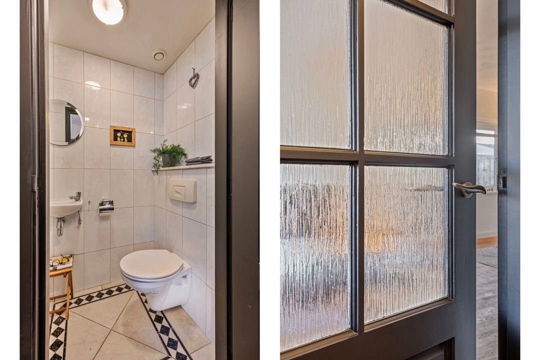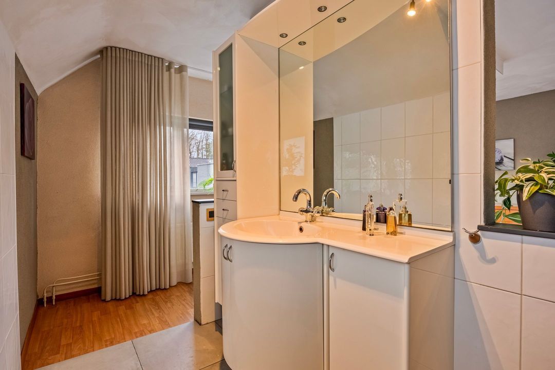 De 2e badkamer op deze etage is voorzien van een ligbad, toilet, wastafel en verder volledig betegeld en in een lichte kleurstelling uitgevoerd. Een raampartij biedt prettig daglicht en extra ventilatiemogelijkheden.