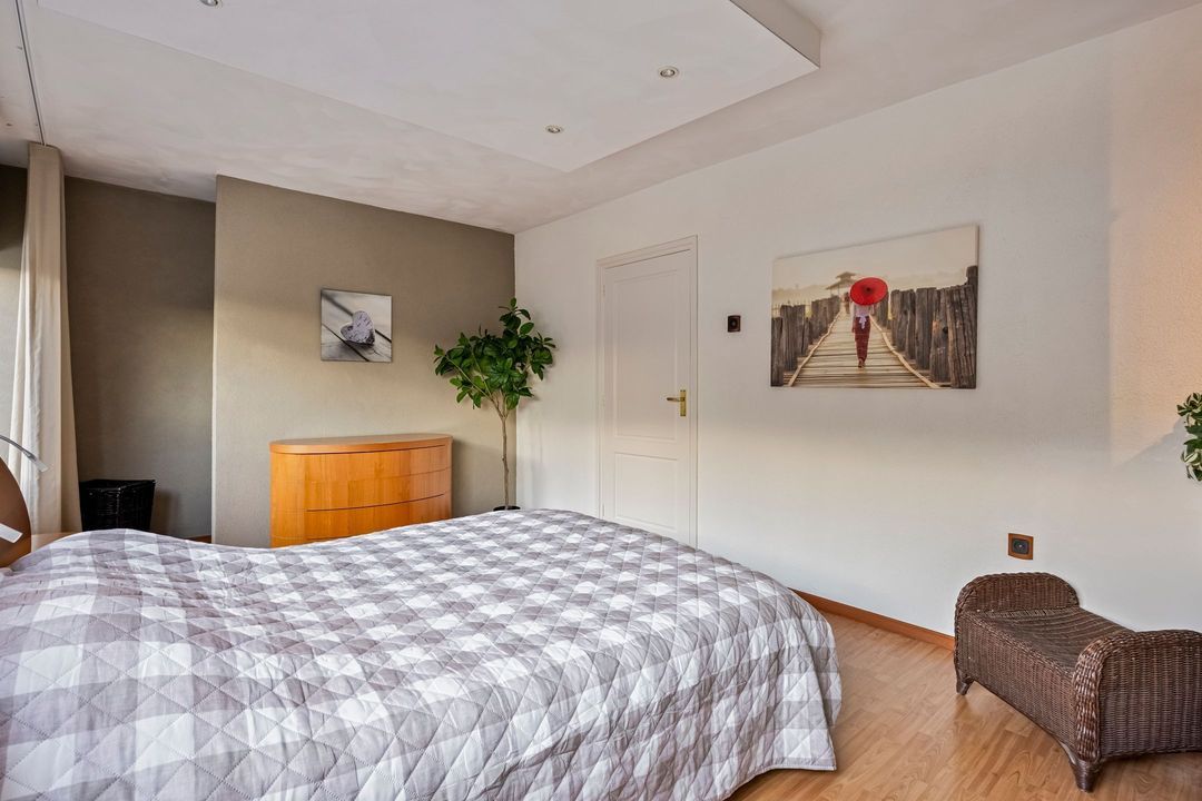 Via de trapopgang in de hal bereikt u de overloop van de hoofdwoning gelegen op de 1e verdieping. Deze biedt toegang naar 2 zeer riante slaapkamers en een separate badkamer.