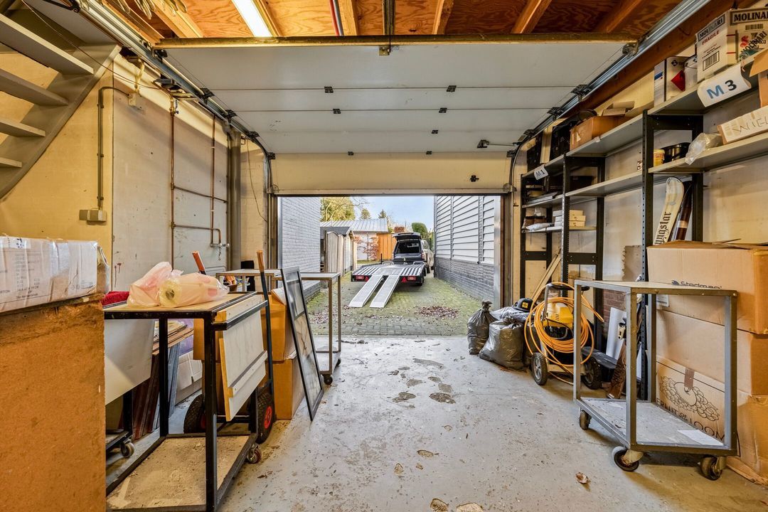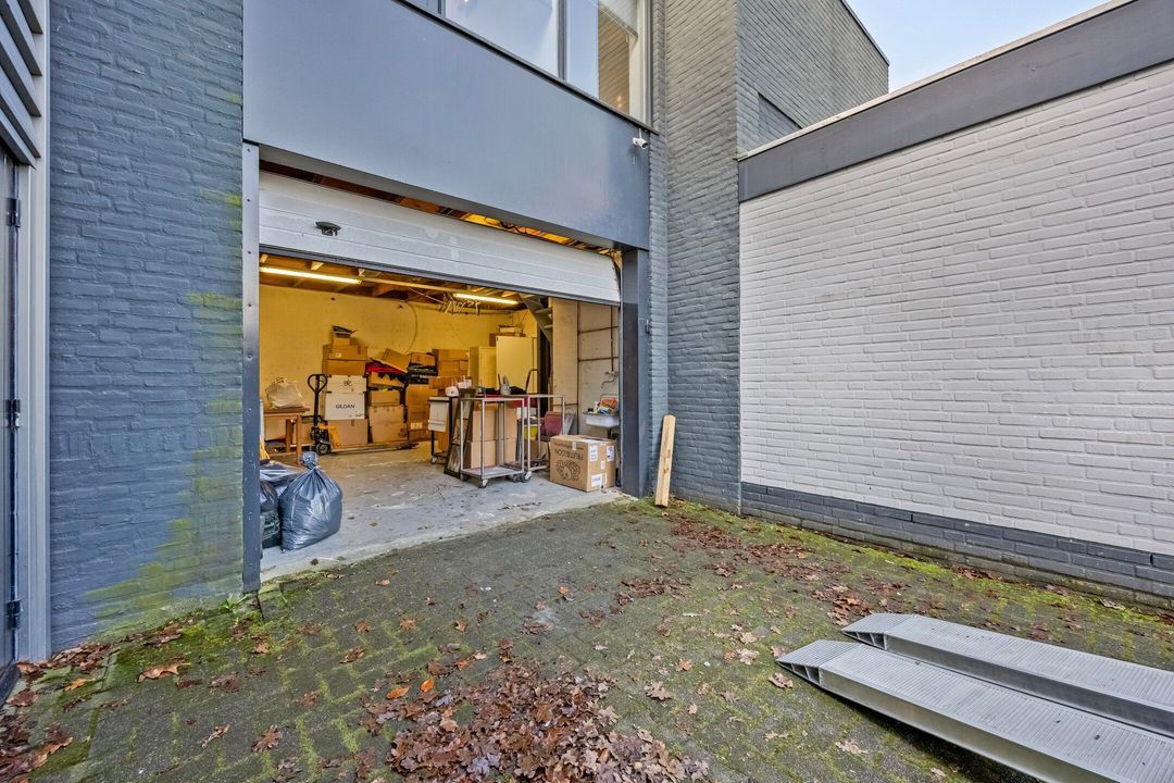Via een loopdeur heeft u toegang naar de garage/opslag ruimte. Deze is voorzien van een praktische roldeur, ideaal voor laden en lossen. Via de oprit aan de zijgevel kunt u deze ruimte bereiken, hierdoor is de ruimte ook geschikt als werkplaats.