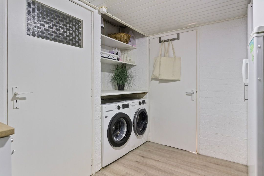 Via de nette voortuin bereikt u de hal met garderobe, toilet (vernieuwd in 2022) en een uitgebreide meterkast. Vanuit de hal komt u in het tussenportaal met toegang tot de trap en een royale multifunctionele ruimte. Deze ruimte beschikt over openslaande deuren naar de tuin, veel lichtinval en volledige privacy. Ideaal voor het realiseren van een praktijk, kantoor, hobbyruimte of logeerkamer. Aangrenzend bevindt zich een praktische was-/bergruimte met keukenblok, witgoedaansluitingen en extra opbergruimte. Vanuit deze ruimte was er oorspronkelijk toegang tot de voortuin via een loopdeur – deze is eenvoudig terug te brengen, wat aantrekkelijk is voor zakelijk gebruik met eigen entree. In een afgesloten gedeelte is de cv-installatie geplaatst.