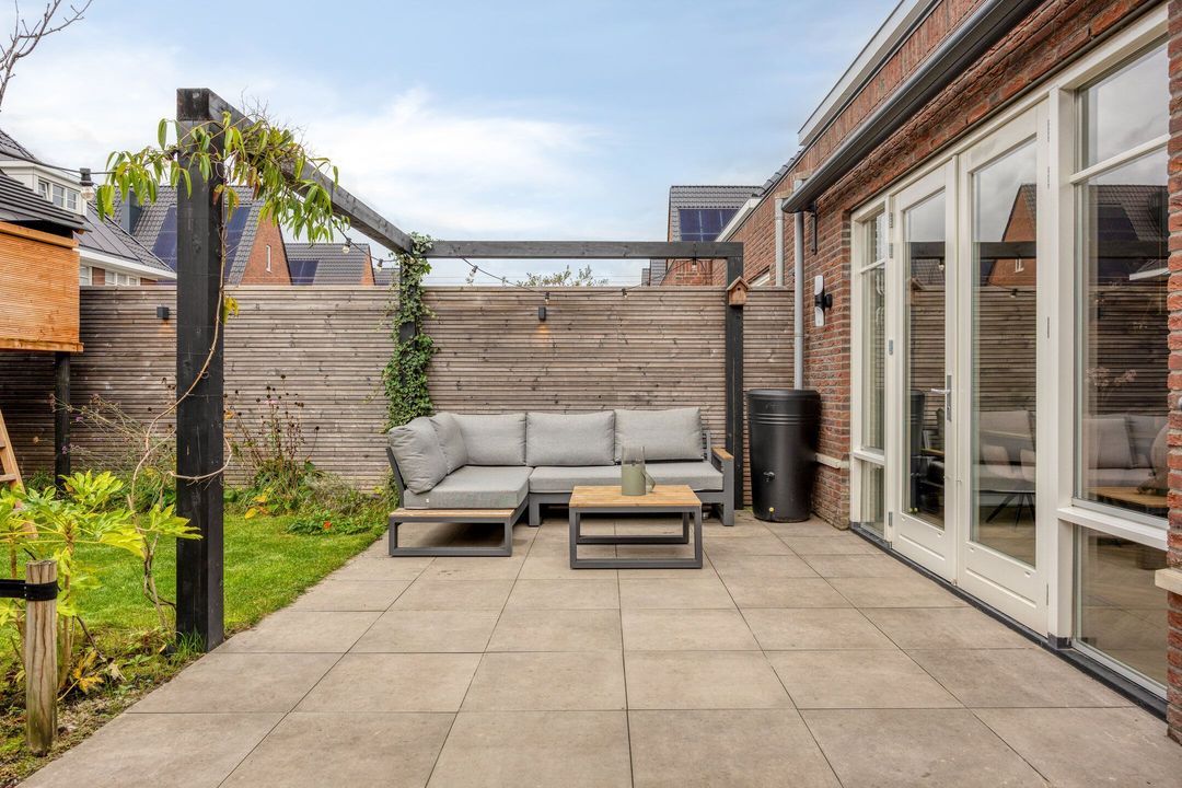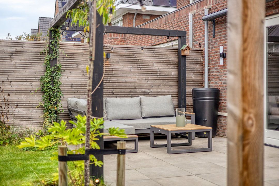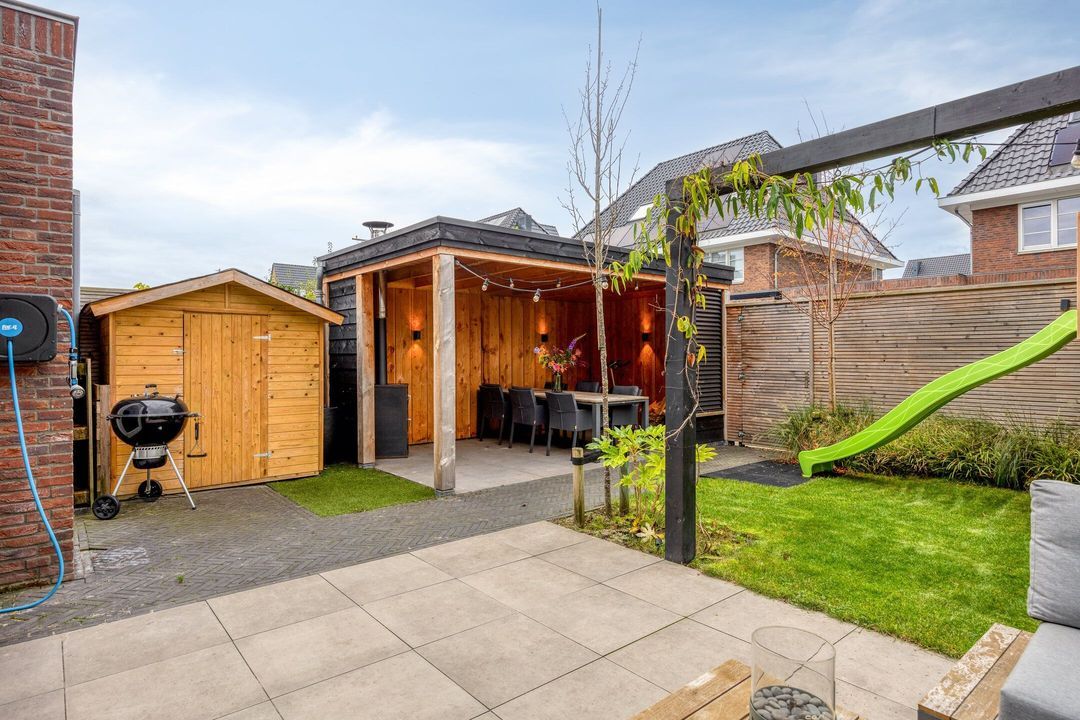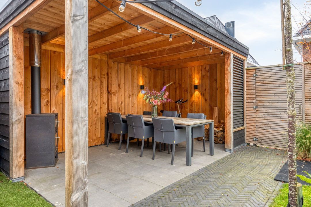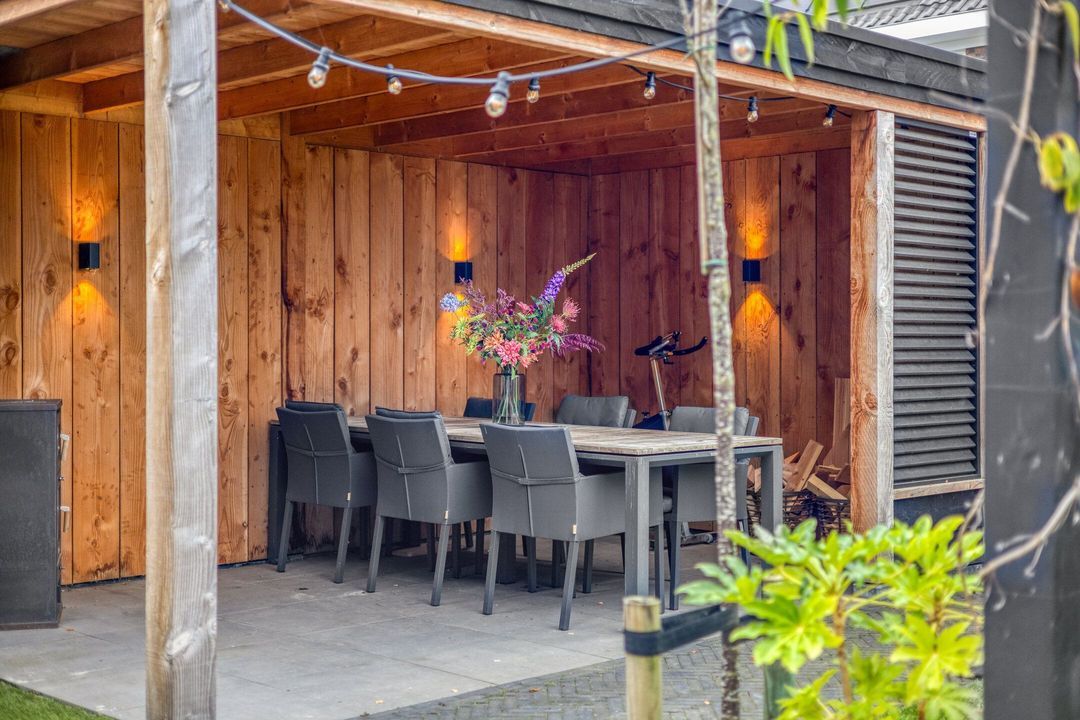 De fraai aangelegde achtertuin, gelegen op het westen, is een heerlijke plek om van de zon te genieten. De tuin beschikt over een gezellige overkapping met houtkachel, waar u een grote eettafel kwijt kunt voor lange zomeravonden. Verder vindt u hier een gazon, zonneterras, houten tuinhuis, achterom en een zonneluifel. Het vele groen en de verzorgde indeling maken dit een tuin waar u het hele jaar door kunt ontspannen.