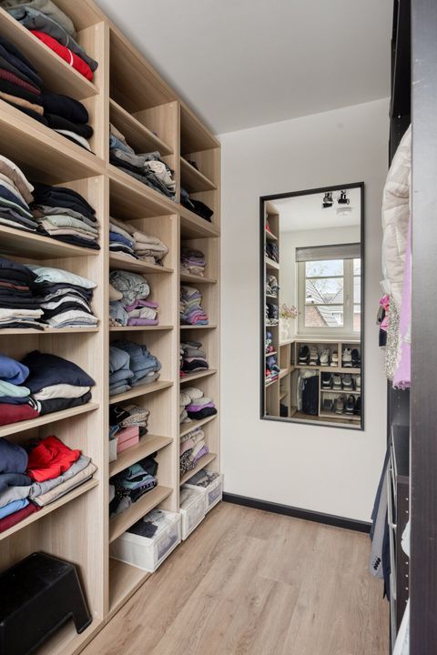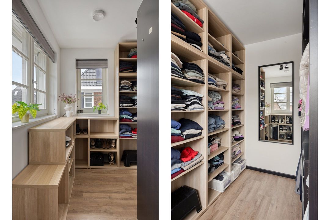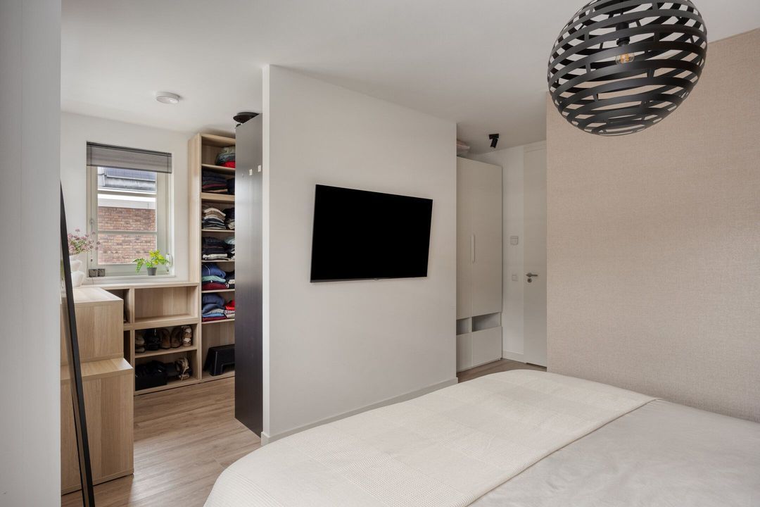 De hoofdslaapkamer ligt aan de voorzijde en biedt royale afmetingen, een inloopkast en volop natuurlijk licht door meerdere ramen.