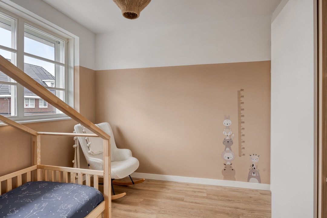 De overige twee slaapkamers, momenteel ingericht als kinderkamers, zijn eveneens strak afgewerkt in lichte kleurstelling. Alle slaapkamers zijn voorzien van rolluiken.