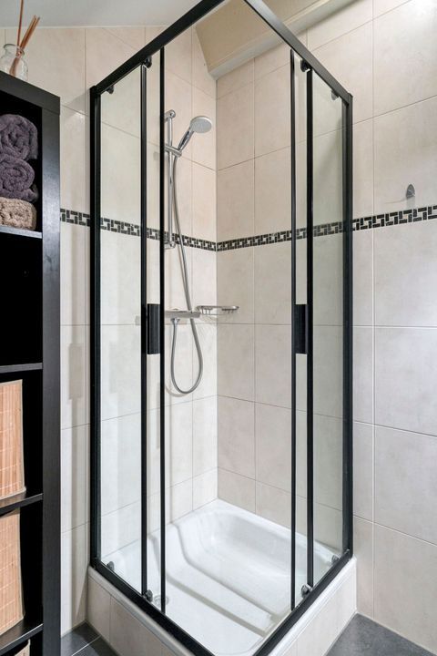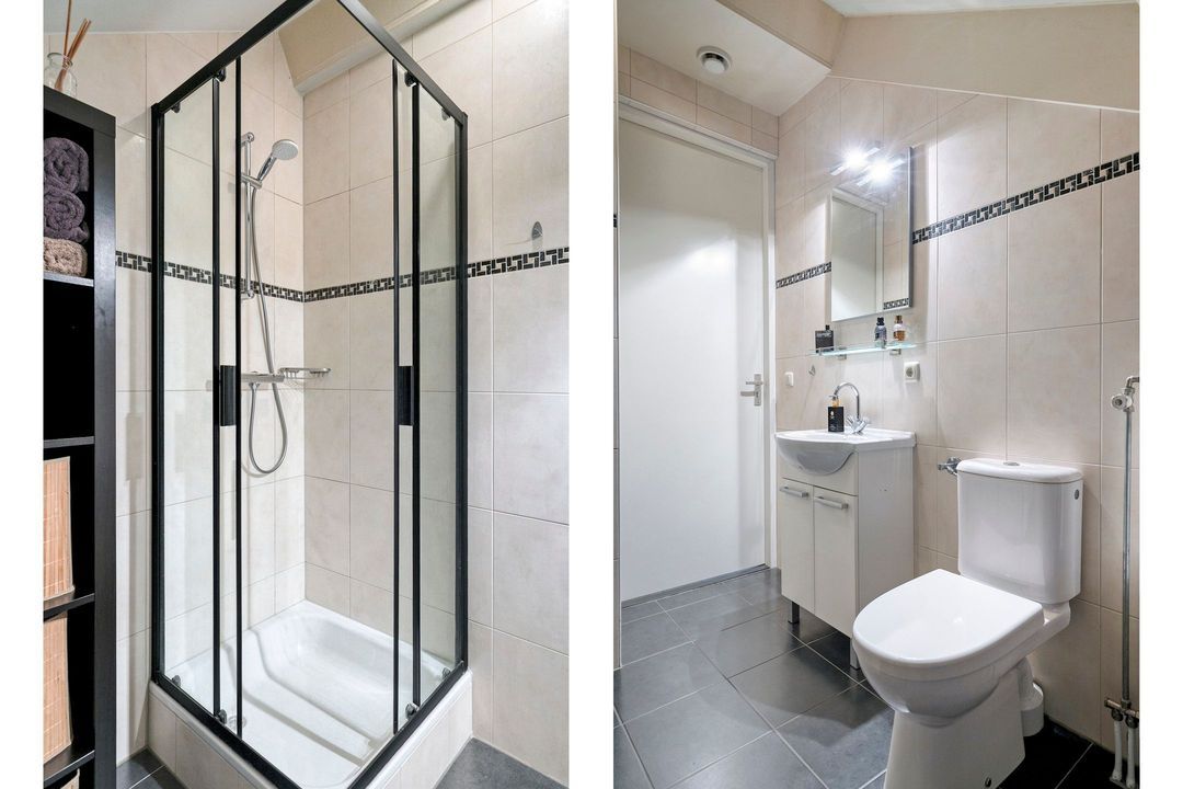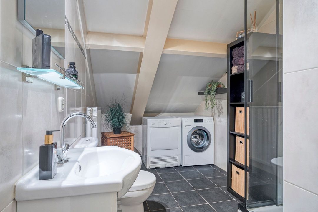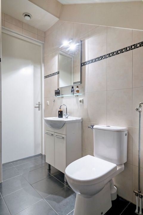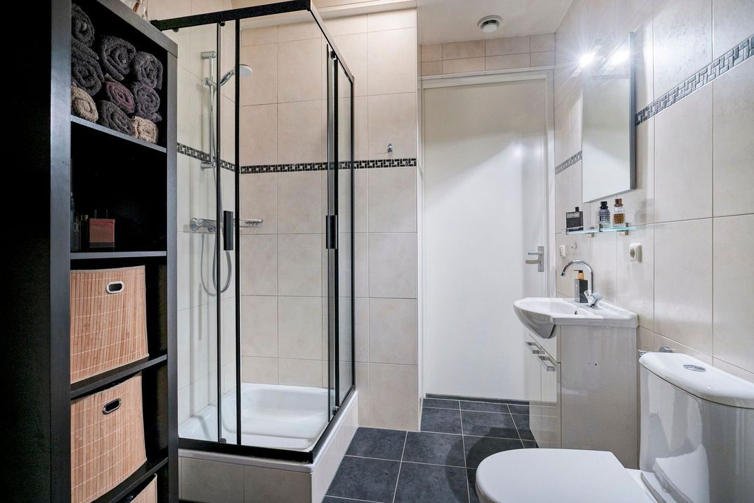 De ruime badkamer is compleet uitgerust met een douchecabine, wastafel met onderkast, toilet en de benodigde aansluitingen voor uw witgoed.