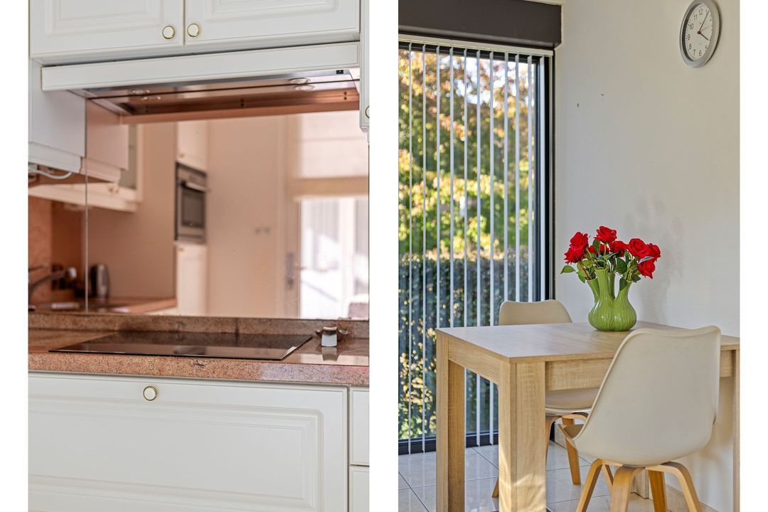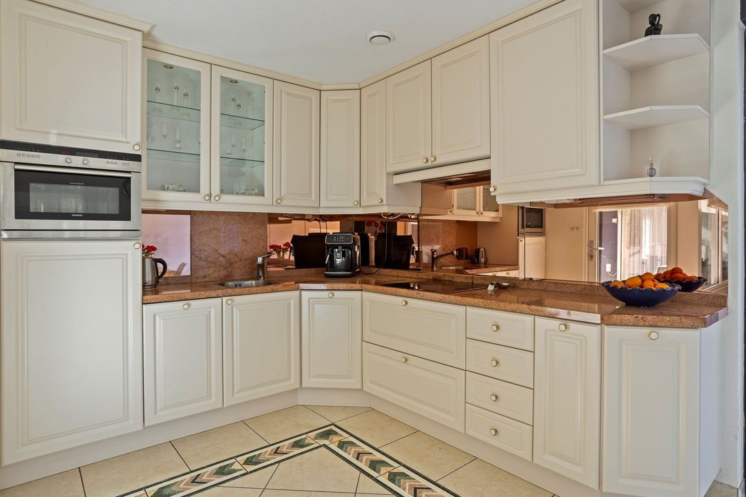 The spacious living room flows seamlessly into the fully equipped kitchen, complete with all essential built-in appliances – perfect for those who enjoy cooking and entertaining.