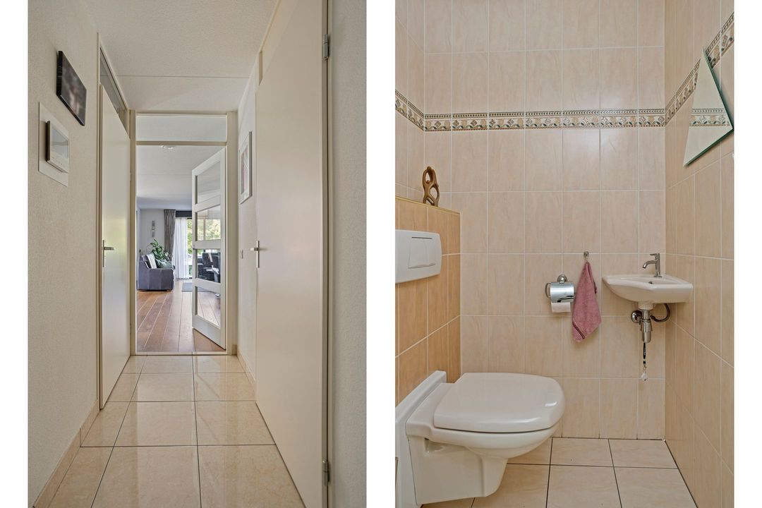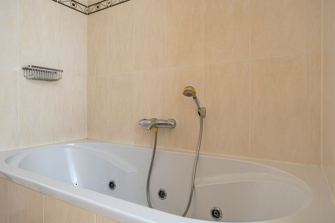 De keurige en geheel betegelde badkamer is voorzien van een aparte douchecabine, whirlpool/ligbad, dubbele vaste wastafel, designradiator en mechanische ventilatie. Daarnaast is er een volledige betegeld, separaat toilet uitgerust met een fonteintje.