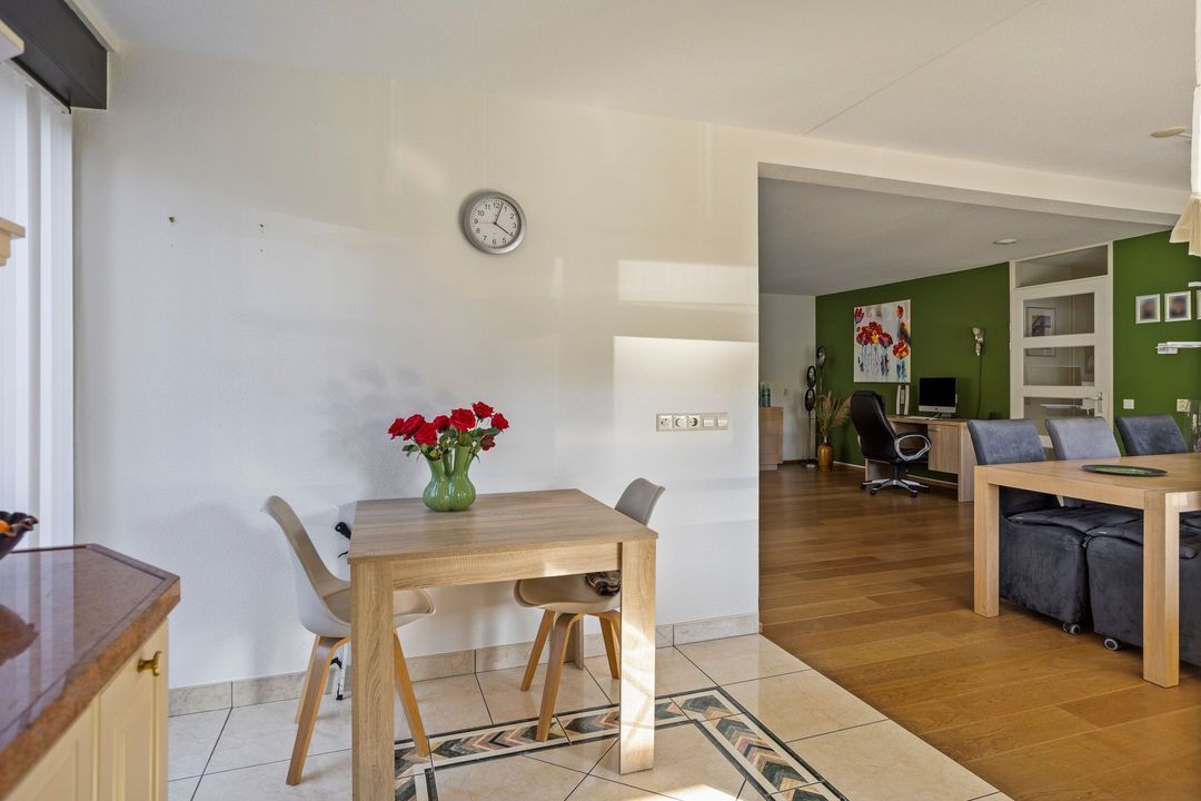 Bij binnenkomst valt direct de ruime en lichte woonkamer op. Grote raampartijen zorgen voor een prettige natuurlijke lichtinval en een aangename sfeer. Voorts een mooi uitzicht op de voorgelegen en eveneens naastgelegen, gezellige levendige straat en plantsoen. De royale woonkamer staat in open verbinding met de compleet ingerichte keuken die is voorzien van alle benodigde inbouwapparatuur. Perfect voor wie graag kookt en geniet van gezellig samenzijn.