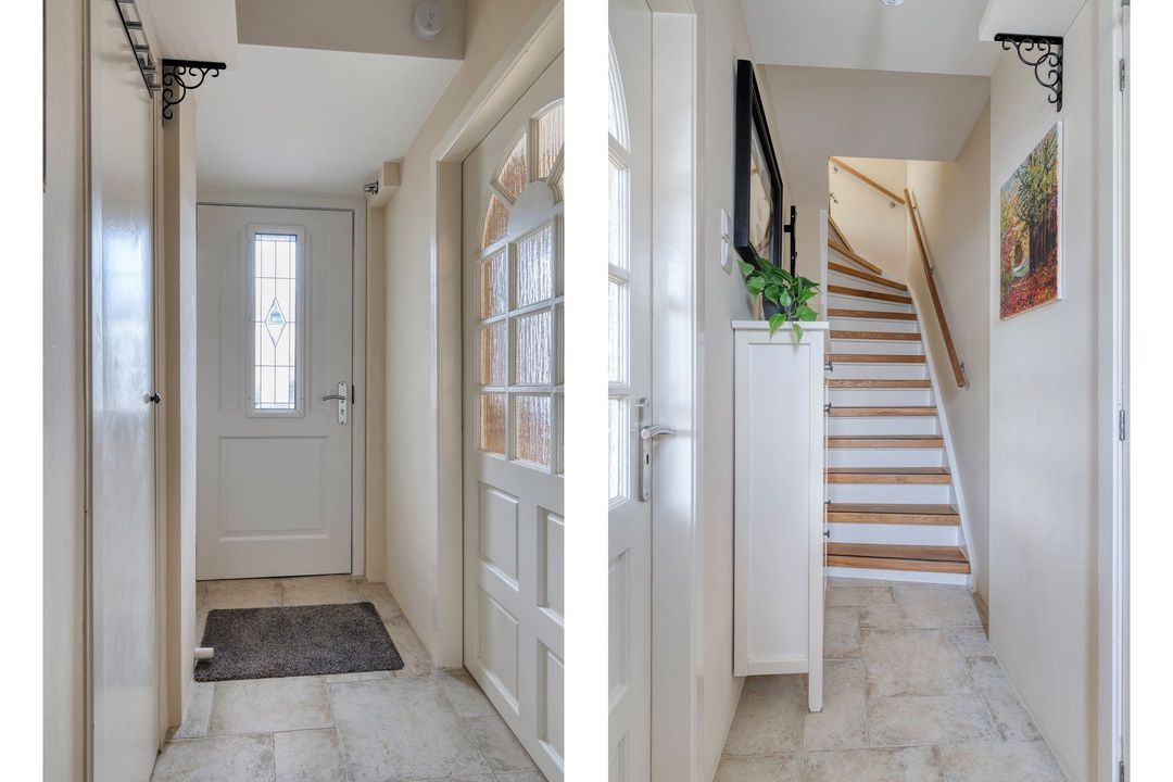 U wordt ontvangen in een lichte hal, voorzien van een tegelvloer met vloerverwarming, meterkast en trapopgang naar de eerste verdieping. Vanuit de hal is er een loopdeur naar de woonkamer, waardoor een prettige doorstroming ontstaat.