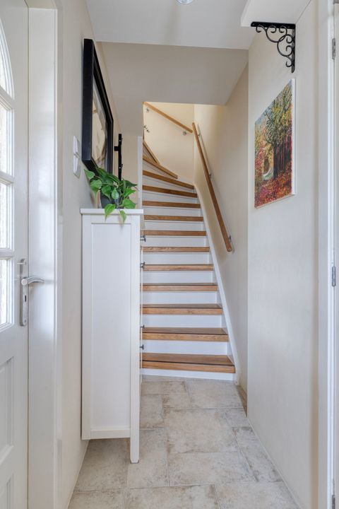 Bij aankomst bereikt u de rustige en kindvriendelijke straat, waar u uw auto eenvoudig voor de deur parkeert. De verzorgde voortuin en karakteristieke entree vormen een warme ontvangst bij binnenkomst.