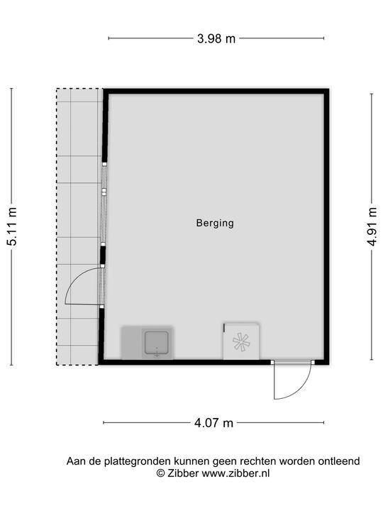 - Geïsoleerde hobbyruimte / tuinberging met wastafel.