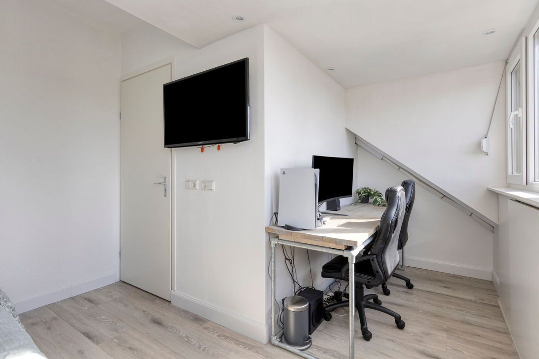 Op deze verdieping bevinden zich daarnaast 2 slaapkamers, beide voorzien van een laminaatvloer en gestucte wanden en plafonds. Het formaat van deze slaapkamers maakt dat ze fijn zijn in te richten als slaap- werk, of hobbykamer.