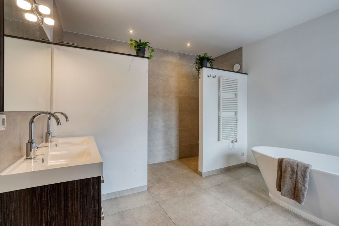 - Royale badkamer met vrijstaand bad, brede wastafel, inloopdouche, vloerverwarming en dakterras