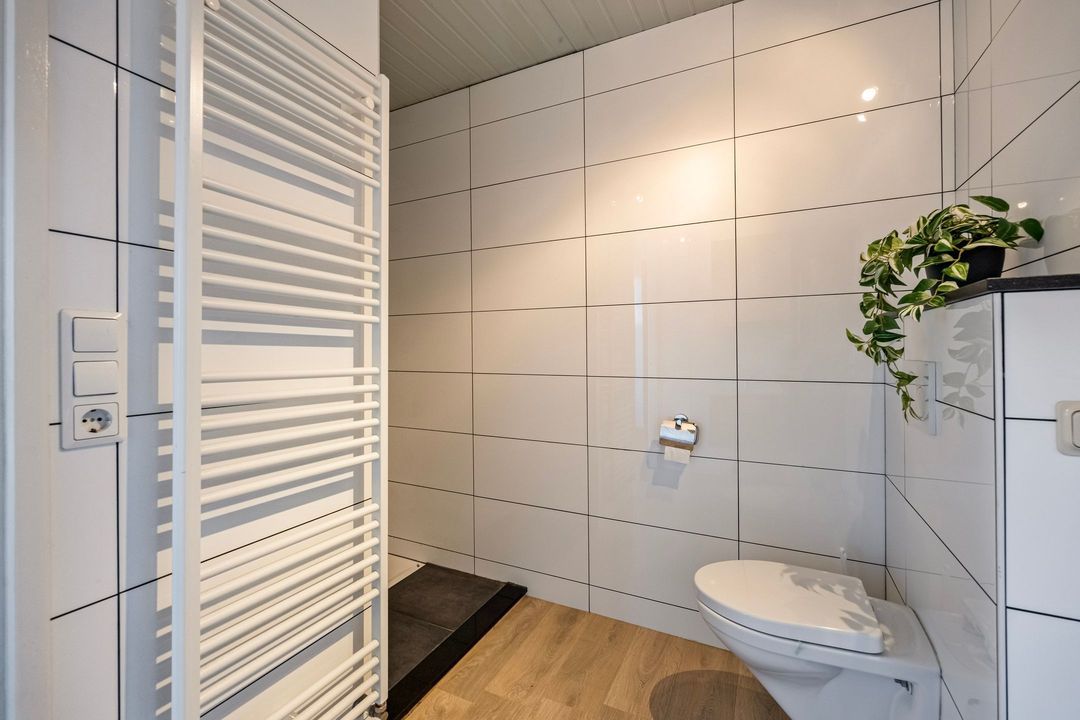 De 2e badkamer op deze etage is voorzien van een ligbad, toilet, wastafel en verder volledig betegeld en in een lichte kleurstelling uitgevoerd. Een raampartij biedt prettig daglicht en extra ventilatiemogelijkheden.