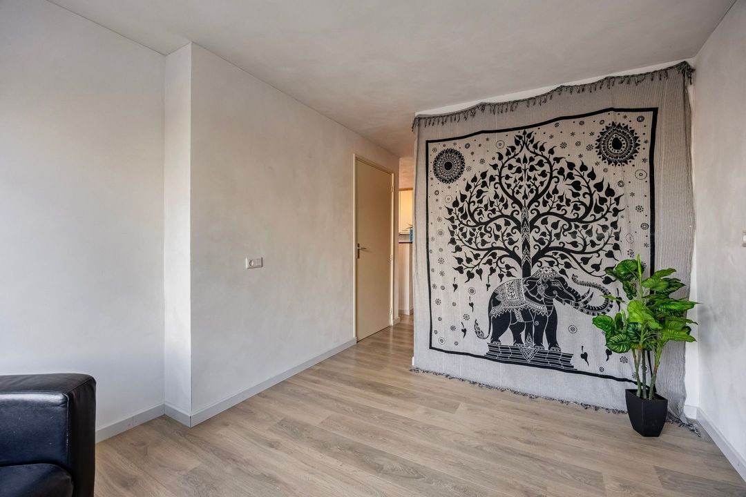 De slaapkamer is klein, maar biedt voldoende ruimte voor een bed.