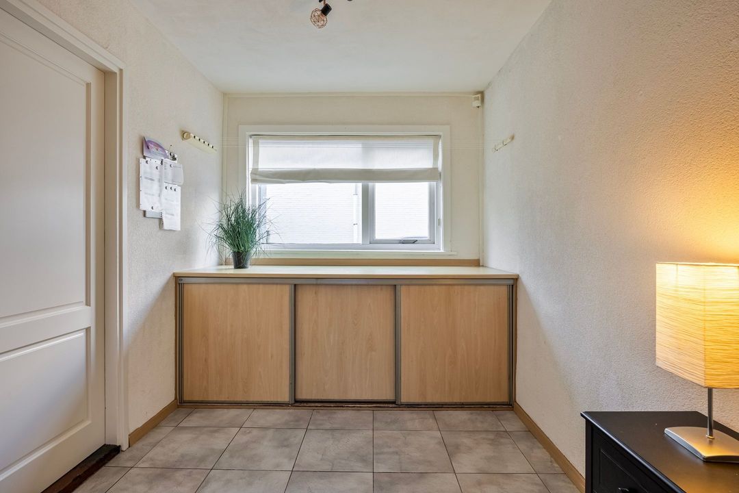 In de bijkeuken bevinden zich de witgoedaansluitingen en een tweede garderobe. Via een loopdeur bereikt u een kantoorruimte en is er een loopdeur nar de tuin.