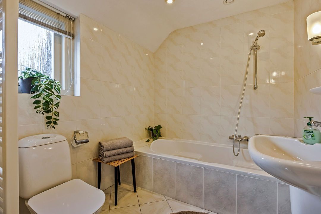 De 2e badkamer op deze etage is voorzien van een ligbad, toilet, wastafel en verder volledig betegeld en in een lichte kleurstelling uitgevoerd. Een raampartij biedt prettig daglicht en extra ventilatiemogelijkheden.