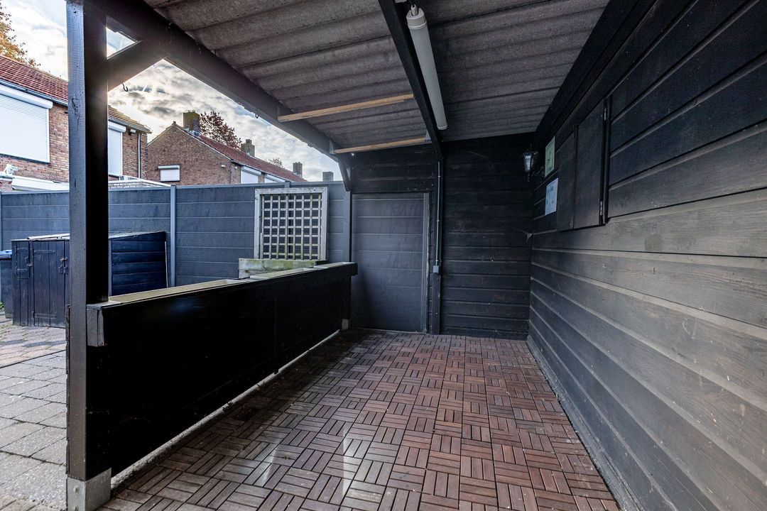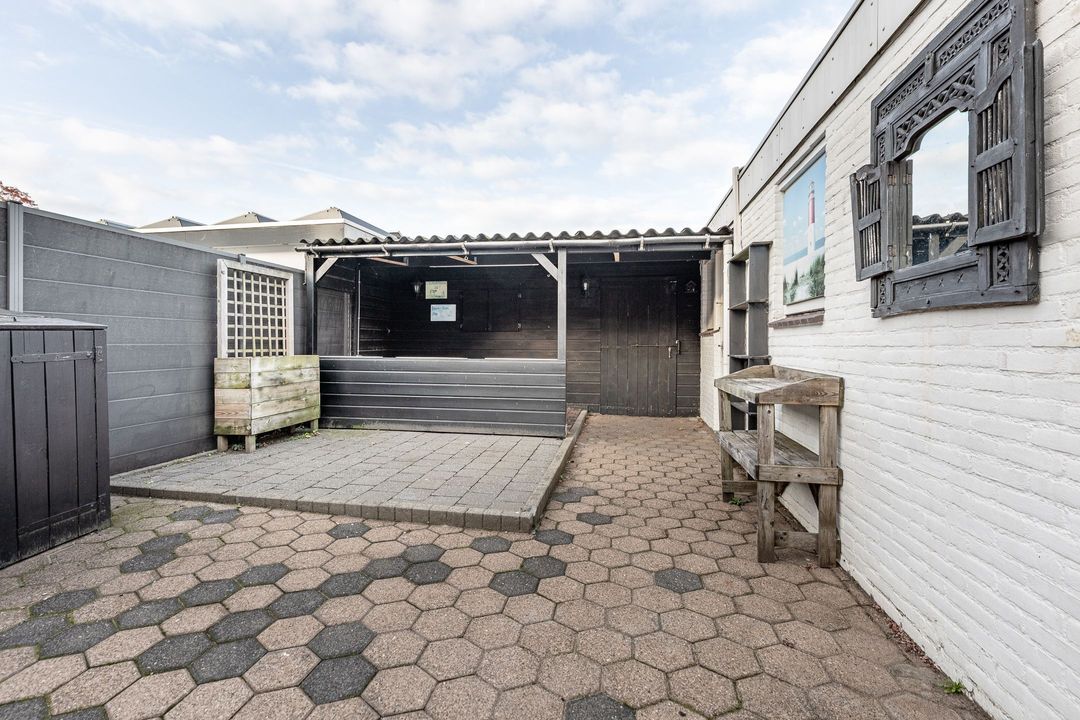 - Overdekt terras en zonnige tuin op het westen met houten berging;