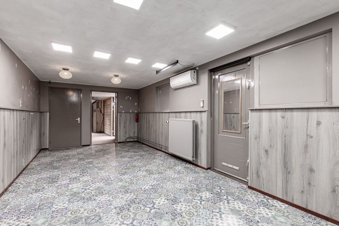 De royale garage is momenteel ingericht als hobbyruimte en biedt veel extra mogelijkheden. Voorzien van een keukenblok met warm en koud water, airco en een apart toilet, is dit de ideale ruimte voor creatieve activiteiten, praktijk aan huis of als extra opslag. De garage heeft een loopdeur naar de achtertuin en eveneens een loopdeur naar de ruime carport en oprit.