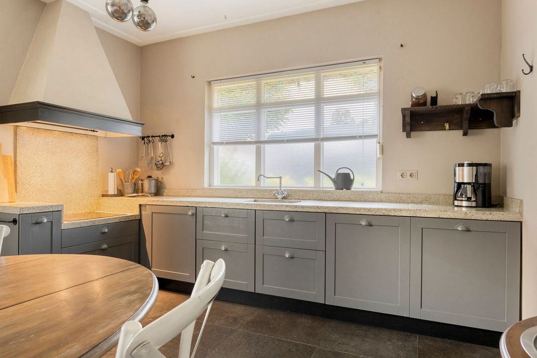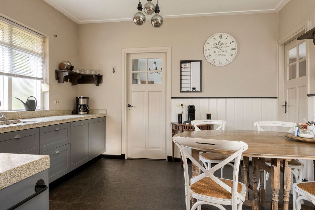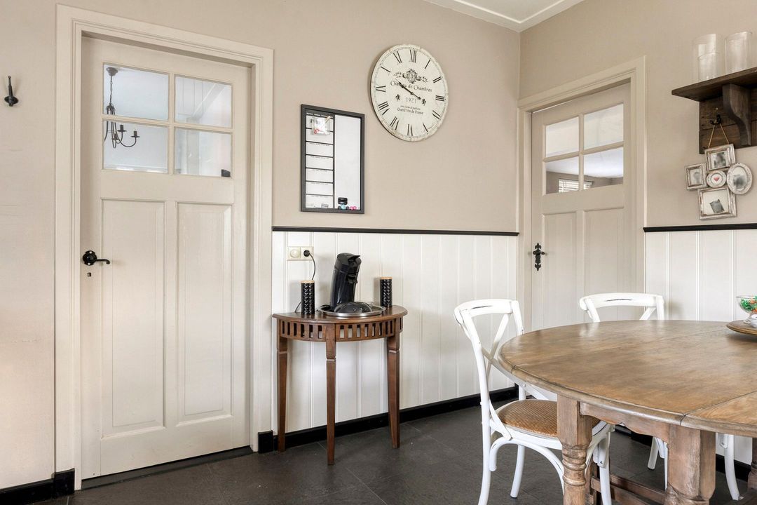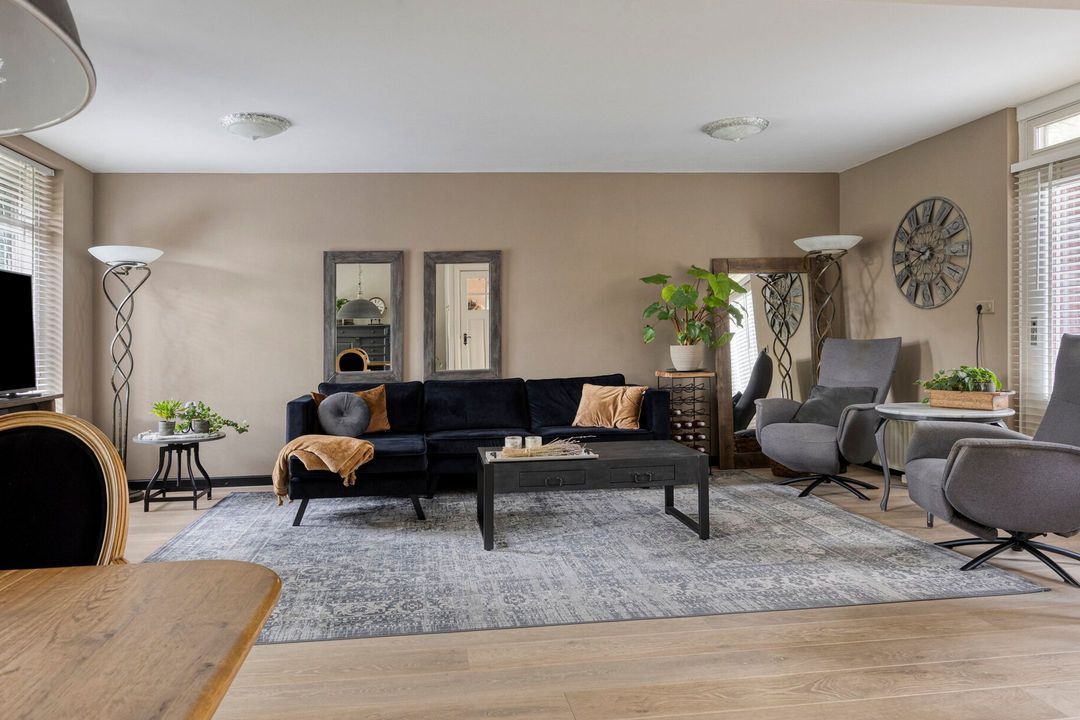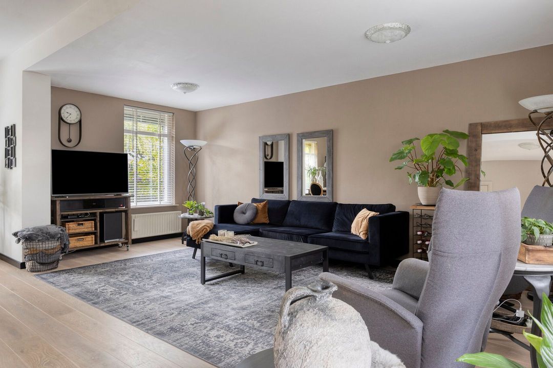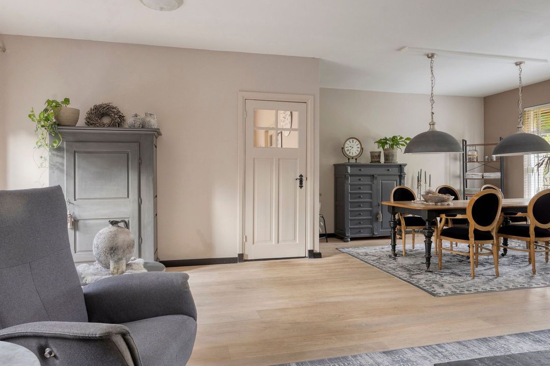 De royale, uitgebouwde woonkamer is een heerlijke leefruimte met veel lichtinval dankzij de vele raampartijen aan weerszijden van de woning. Een sfeervolle, massief houten vloer, neutrale wanden en de doordachte indeling zorgen voor een warme, uitnodigende uitstraling. Vanuit de woonkamer kunt u genieten van een vrij uitzicht aan de voorzijde en middels een loopdeur heeft u toegang tot het terras en de tuin.