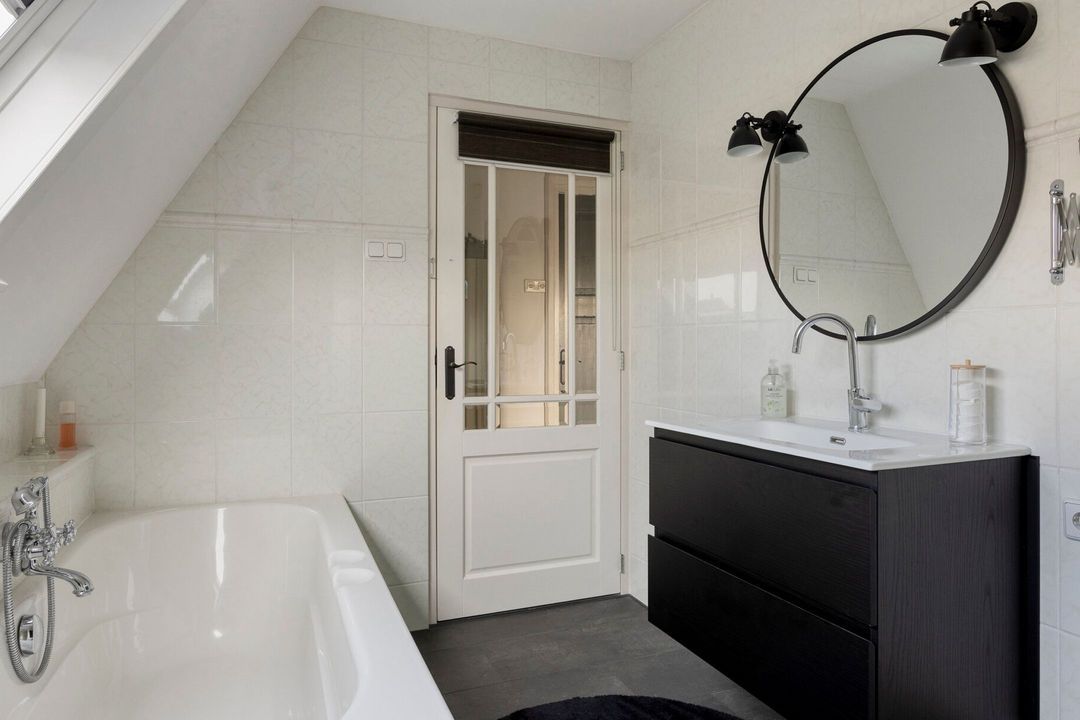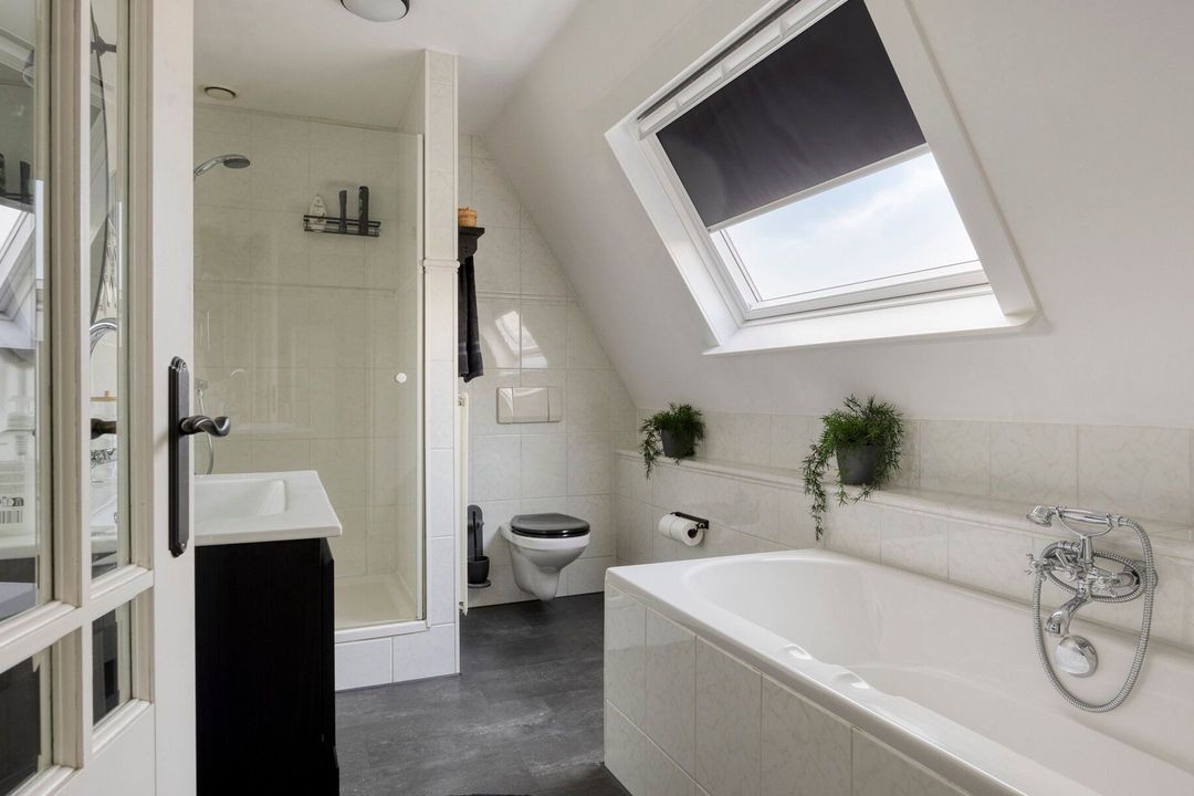 De badkamer is eigentijds uitgevoerd en voorzien van een ligbad, douchecabine, wastafel in een fraai meubel met extra bergruimte en een wandcloset met ingebouwd reservoir. Een nieuw Velux dakraam zorgt voor prettig daglicht en extra natuurlijke ventilatiemogelijkheden naast de aanwezige mechanische ventilatie.