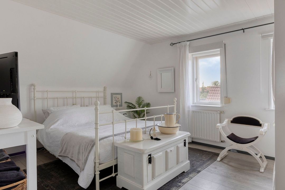 Op de verdieping bevinden zich 3 zeer ruime slaapvertrekken. De overloop en de slaapkamers zijn voorzien van een keurige laminaatvloer, in lichte tinten uitgevoerde wandafwerking en karakteristieke plafonds voorzien van kraaldelen.
