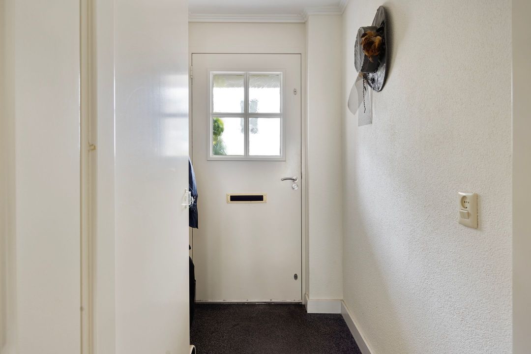 Via de overdekte entree heeft u toegang tot de hal. In de hal bevind zich de meterkast die is uitgevoerd met meer dan voldoende groepen en een aardlekschakelaar.