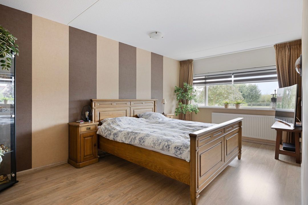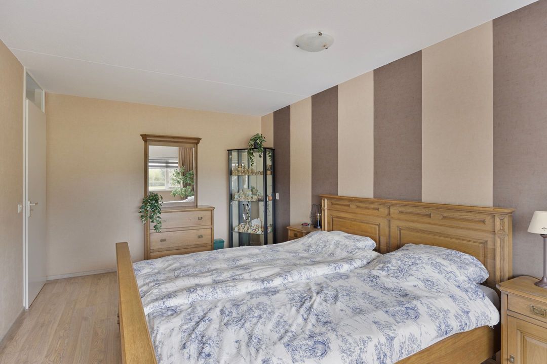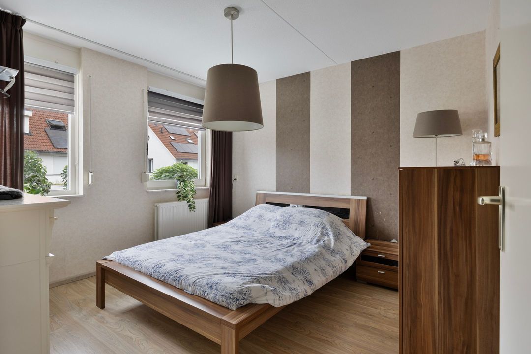 Slaapkamer één is gelegen aan de voorzijde van de woning en heeft een prachtig uitzicht op het voorgelegen plantsoen. Slaapkamer twee is eveneens aan de voorzijde van de woning gesitueerd en momenteel ingericht als inloop kleedkamer. De derde slaapkamer is op de achtertuin gesitueerd en is wederom royaal van afmeting. De gehele eerste etage is belegd met een zeer nette laminaatvloer en alle slaapvertrekken inclusief de badkamer zijn voorzien van rolluiken.