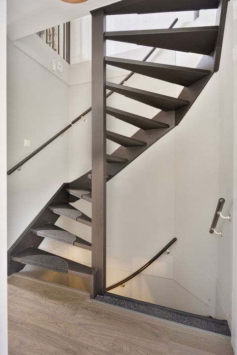 A fixed staircase leads to the spacious second floor. Here you will find connections for laundry appliances, the central heating system, and the mechanical ventilation unit.