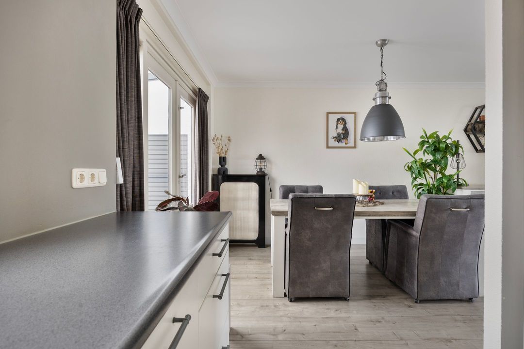 Ideally located in a popular residential area in Mierlo-Hout, with amenities such as shops and the NS railway station within convenient distance. The property boasts a high-quality finish and excellent maintenance. Features including a spacious kitchen, neat sanitary facilities, a pleasant covered terrace, and 10 solar panels make this home highly attractive as a whole.