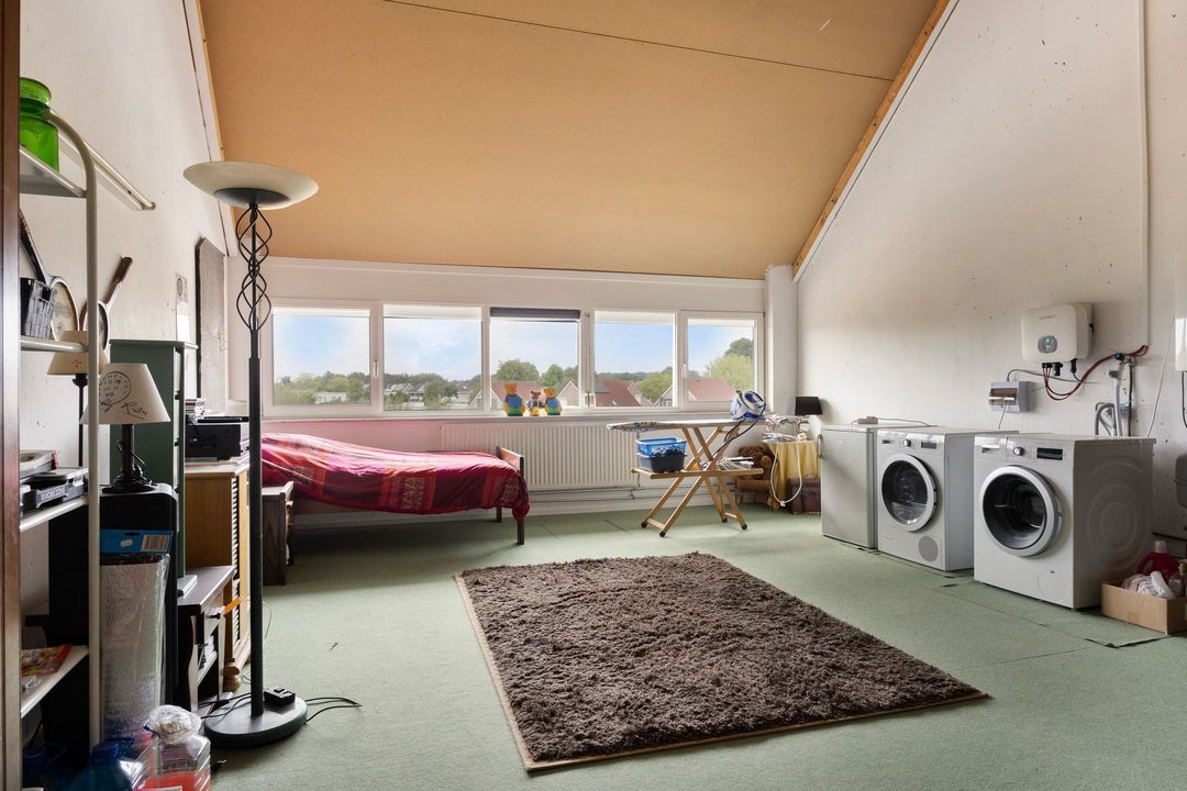Via vaste trap bereikt u de zeer ruime 2e verdieping. Hier treft u de aansluitingen voor al uw witgoed, de cv installatie en de unit van de mechanische ventilatie. Op deze etage heeft u de mogelijkheid om één of twee fantastische extra slaapkamers te realiseren met eventueel een tweede badkamer.