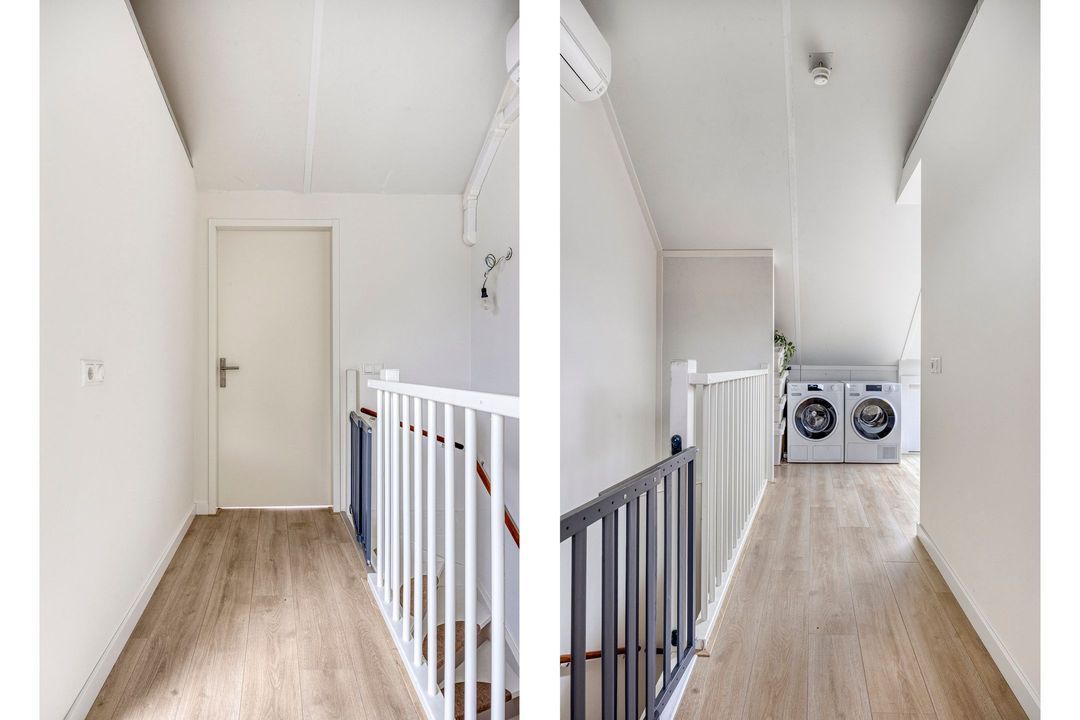 Via de vaste trap bereikt u de tweede verdieping. De overloop is voorzien van airconditioning en een pvc vloer en biedt toegang tot 1 slaapkamer en een multifunctionele ruimte en de vliering.