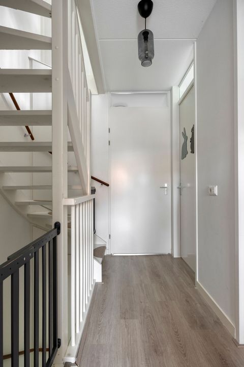 U komt binnen in de hal, voorzien van een garderobe, meterkast en een modern gastentoilet met fonteintje. Vanuit de hal bereikt u de trapopgang naar de eerste verdieping en via een loopdeur de woonkamer.